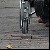We steken de Brandenbeemd over en de lopen de Rippaertsbeemd in en komen in de Kortendonk aan. Daar waar de Kortendonk de Veerdonk kruist, ligt de weg ongeveer 30 cm. lager dan de straat waar wij vandaan komen. ,,Nu wordt het leuk”, zegt Stefan. ,,Met de rolstoel kom ik de stoep wel af, maar aan de overkant terug de stoep op is erg moeilijk!” Stefan neemt plaats in de rolstoel als ik hem vraag te laten zien wat hij bedoelt. Bij de eerste poging om de stoep op te komen kantelt hij met zijn rolstoel bijna achterover. Anja schiet Stefan te hulp. Met veel moeite trekt zij hem met de rolstoel achteruit het trottoir op.